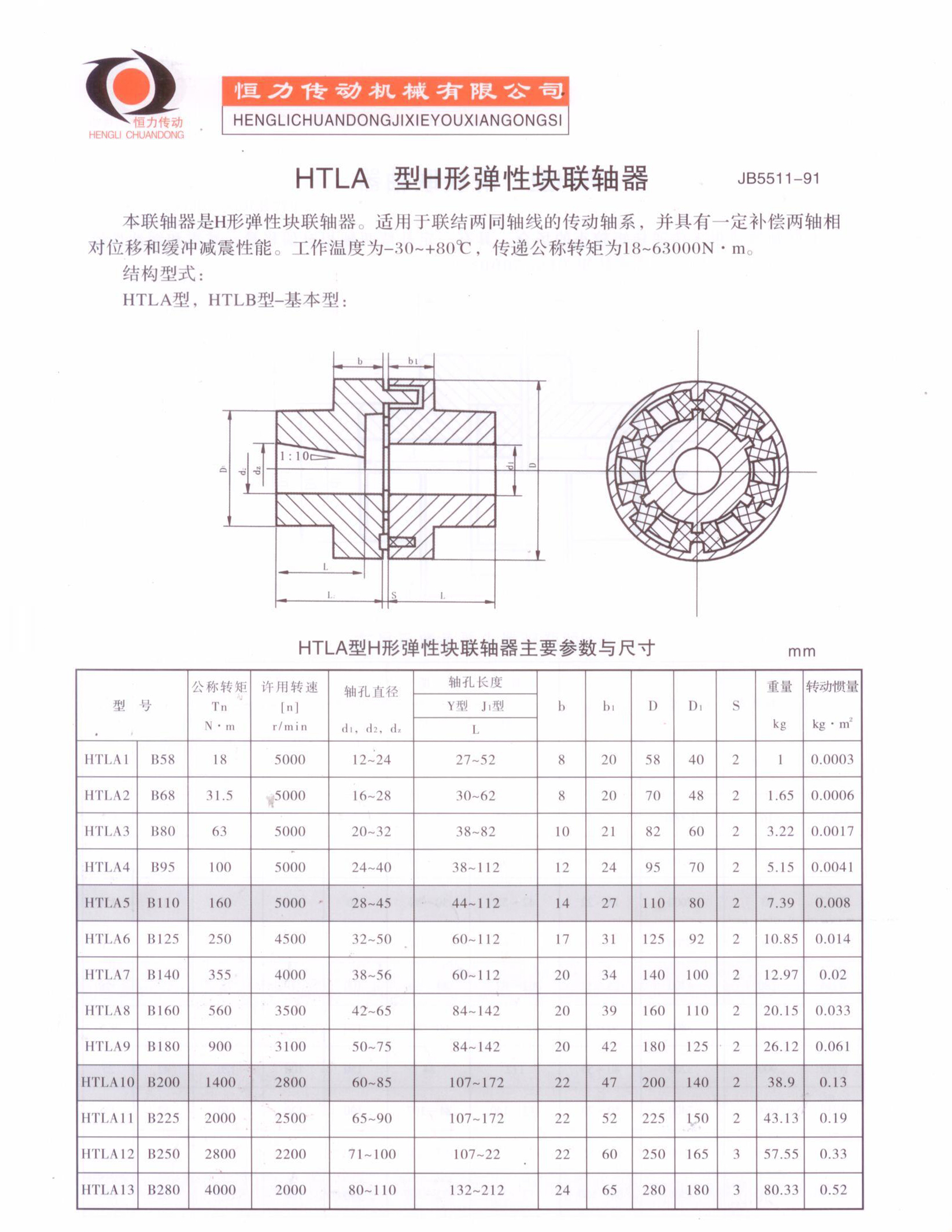 HTLB型H形弹性块联轴器